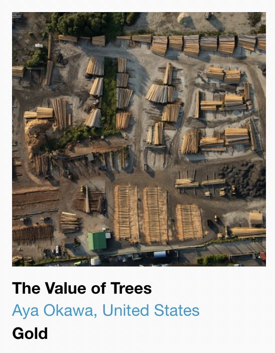 The Value of Trees, by Aya Okawa. Very honored to receive the Gold Prize in the Editorial/Environmental Category for my ongoing series, the Value of Trees. Thank you Tokyo International Foto Awards for the recognition!